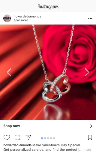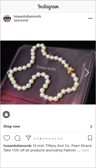 Carousel ads are a great way to create a simple, efficient advertisement for various objectives. From raising awareness to driving traffic to a website link, the use of multiple images and video paired with engaging copy, allow the viewer to browse multiple products each with their own unique URL. There is little difference between Instagram and Facebook on these ads as they are both owned by Facebook.